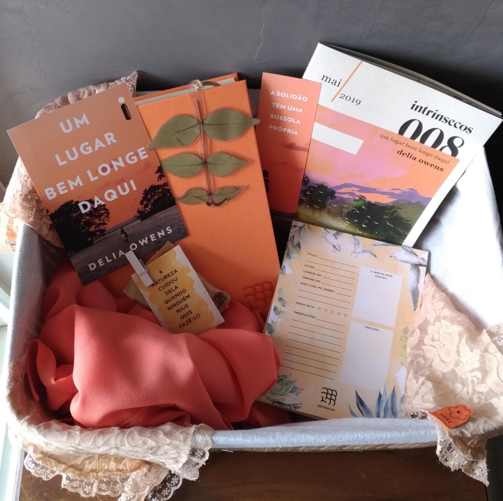 Itens que vieram na caixa 008: Cartão Postal com ilustração da capa, saquinho de sementes com citação do livro, edição exclusiva Intrínsecos do livro, marcador de página com citação do livro, revista 008, bloco de anotação de resenhas de livros. Demais itens da foto são meramente ilustrativos.