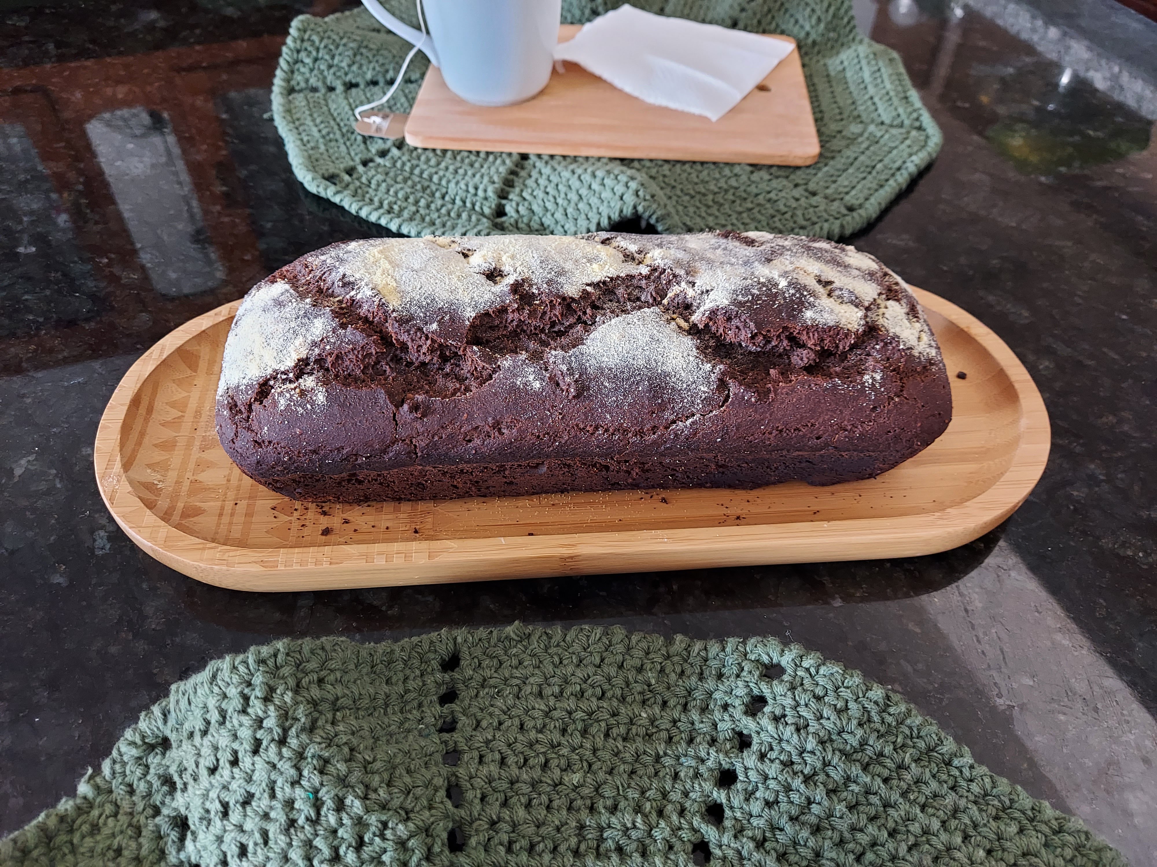 Despeje numa forma de bolo inglês previamente untada com azeite (pode ser margarina ou manteiga) e polvilhada (polvilhar com o cacau em pó. Cobrir com filme plástico e enrolar num pano de prato (pra ficar bem quentinho) e deixar descansar de 30 min a 1h enquanto a massa cresce.
