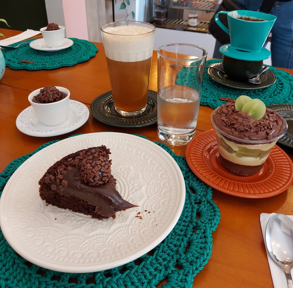 Estou falando doceria, mas a verdade é que eles também têm pães e salgados, ou seja, é uma opção bem completa de café da manhã, brunch ou lanche da tarde.