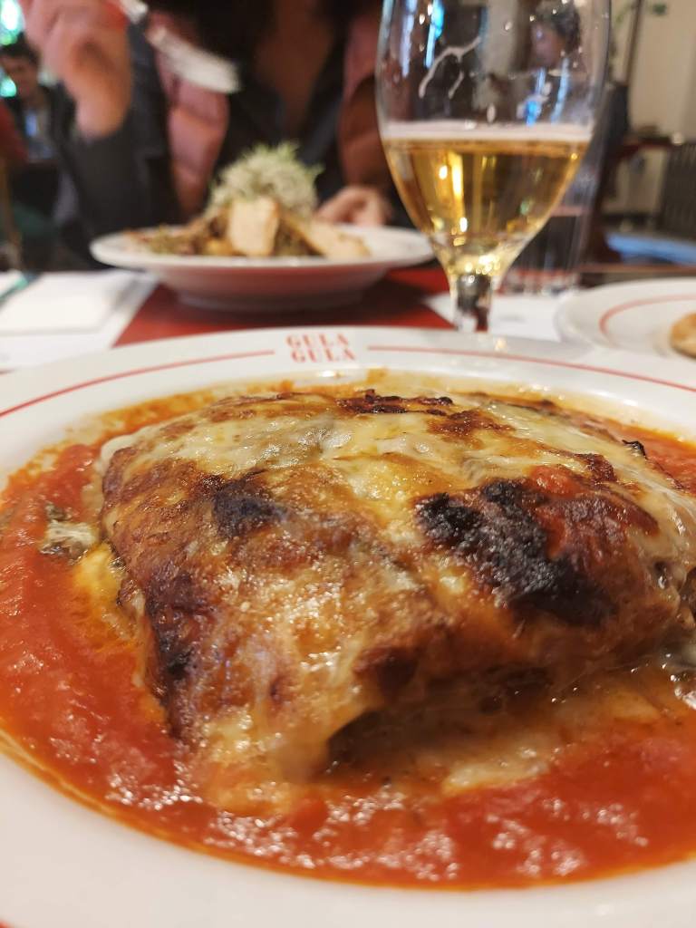Cada um pediu um prato diferente, então deu para ter uma boa noção da apresentação dos pratos. Meu irmão e a namorada pediram um aperitivo para dividirem, porque não queriam comer muito (à noite ainda íamos à Fogo de Chão). Eu e minha mãe pedimos cada uma a lasanha de berinjela, depois de muito tempo tentando nos decidir por qual dos tentadores pratos provar.