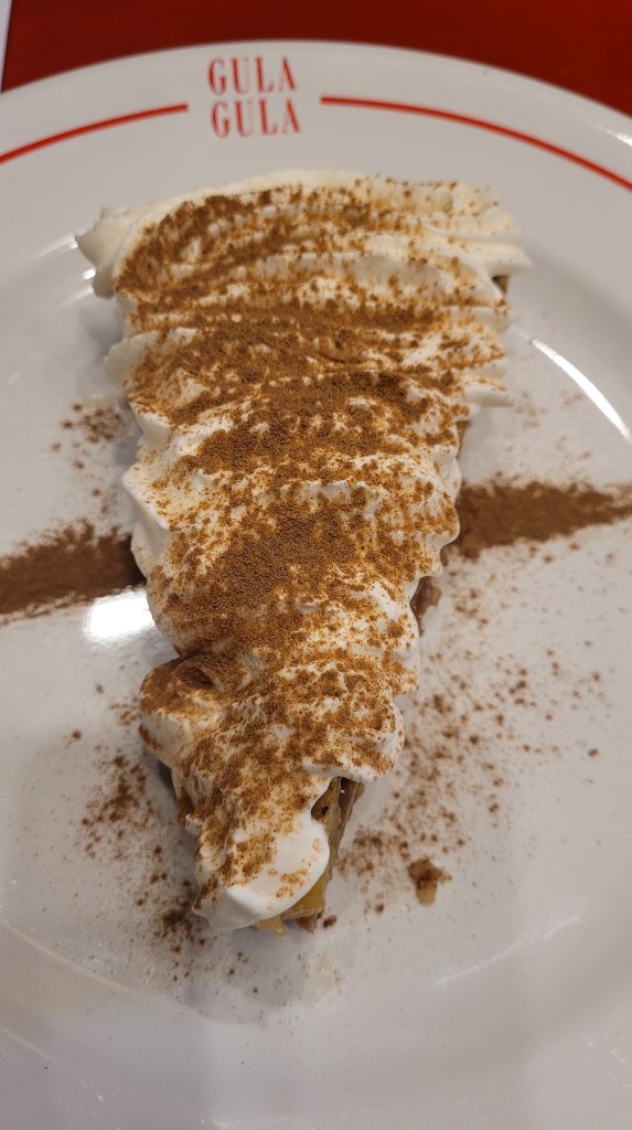 De sobremesa, consegui provar a banoffe dos meus pais. No cardápio ele consta como sem glúten. Só queria dizer uma coisa: melhor banoffe que já comi na vida. Volto fácil só pela banoffe. Ah, e caso tenham ficado curiosos pela sobremesa do marido, que foi mais esperado que o prato principal, era o rocambole de chocolate e doce de leite. Segundo ele, nota 10.
