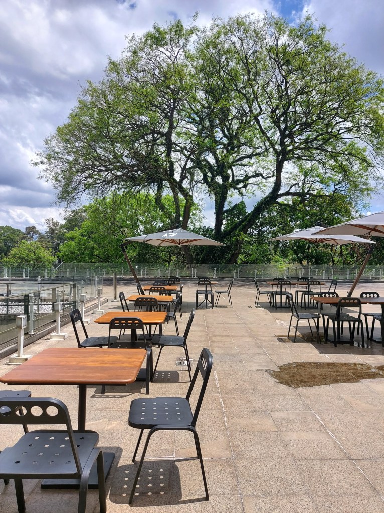 Naoki gostou tanto da experiência que não queria sair de lá. Foi preciso explicar que o passeio ia continuar e ele iria poder ver São Paulo ainda mais de cima, onde as árvores em torno do café não o permitiam enxergar. Assim que ele topou, subimos para o terraço. E lá, ficamos mais um bom tempo, curtindo a vista, tirando fotos, vendo aviões e os muitos prédios de São Paulo. O dia estava realmente lindo, mas isso já comentei. O restaurante estava cheio, e, como havíamos acabado de comer, não almoçamos por lá.