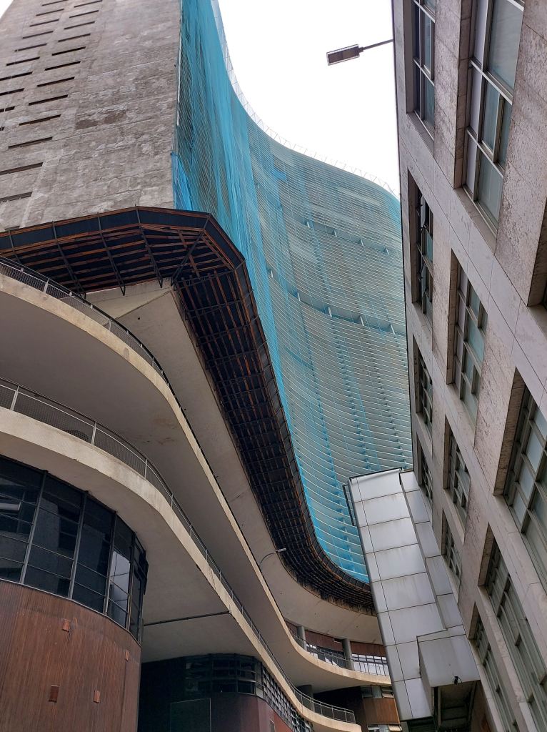 O Copan mesmo, embora famoso, projeto de Oscar Niemeyer, encontra-se em processo de reforma, e, portanto, com a tela de segurança que vocês podem ver na foto abaixo, que, infelizmente, não deve sair tão rápido já que o trâmite de sua restauração tem sido demorado.