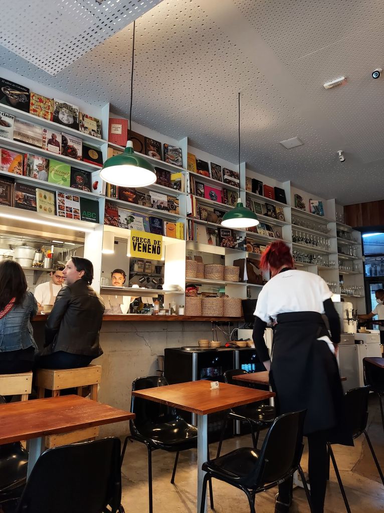 O espaço interno é concorrido, pelo menos de domingo, que foi o que enfrentamos. Mas como chegamos com folga de horário para queimar até a hora de irmos para o aeroporto, foi tranquilo esperar vagar mesa para 7 (com direito a cadeirão pro Naoki). Mas há mesas externas também, talvez menos concorridas. A experiência, porém, de comer cercado de livros é inusitada e muito valorizada por mim.