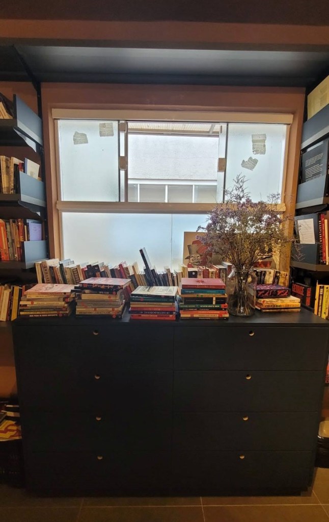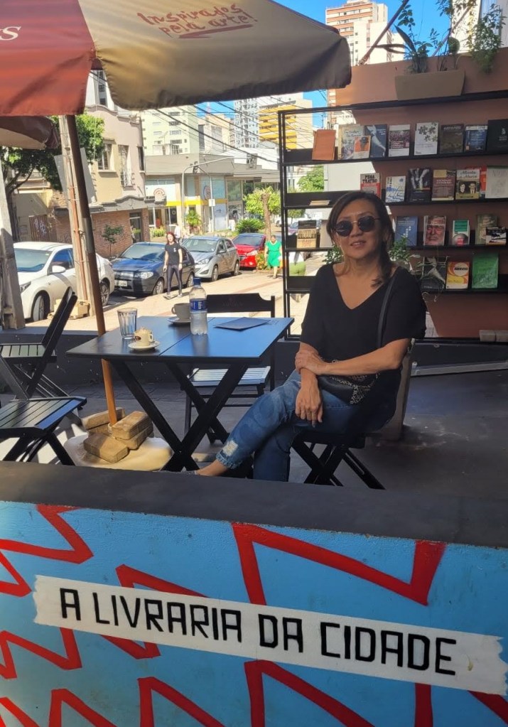 No mês de dezembro (2022) fui finalmente conhecer a Livraria Olga, que abriu as portas aqui na minha cidade em agosto de 2022 (mas esteve na ativa pelo menos desde abril). Não consegui ir antes por motivos de MATERNIDADE. (Mães e pais me entendem, acho). Mas enfim, aproveitando o recesso de fim de ano do trabalho, tanto meu como da minha mãe, que, por ocasião, estava aqui, mais as férias do Naoki (meu filho, pra quem é novo aqui), esse combo todo foi simplesmente perfeito para ir conhecer o espaço, ainda que de forma um tanto breve e num dia de semana, pela manhã, sem evento nenhum acontecendo.