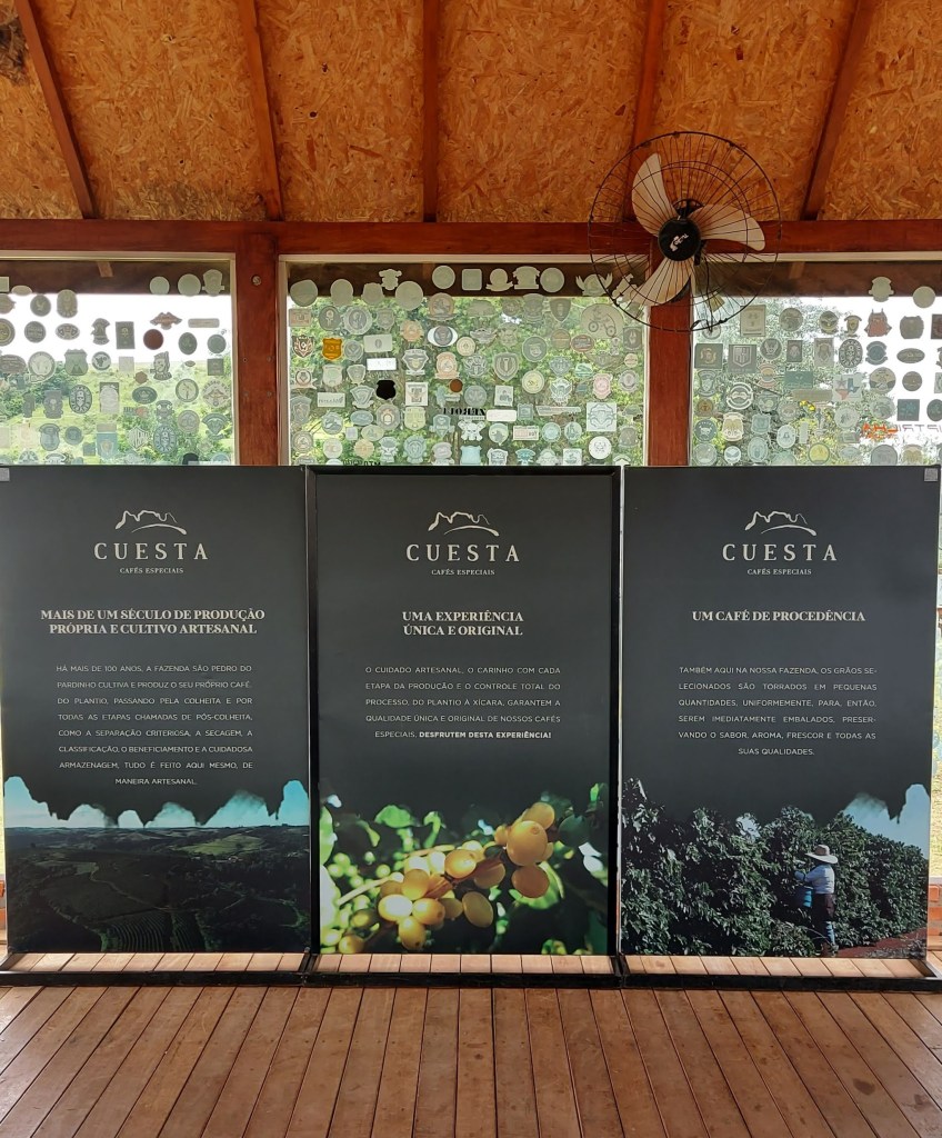 O Cuesta Café é, na realidade, a loja da Fazenda São Pedro do Pardinho, que fica, como o nome já indica, na cidade de Pardinho. Sua localização é privilegiada pela belíssima vista da Cuesta de Botucatu.