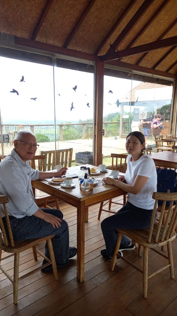 Além disso, o café é delicioso, e toda a cadeia de produção, do cultivo à torrefação é feita na própria fazenda, entoando uma história que vem desde os anos 1881. Para apreciar o café, pedi, para acompanhá-lo, um panini com o queijo produzido na região também, que achei muito saboroso (queijo azul), e um pão de queijo simples para o Naoki. João pediu um pão com requeijão (clássico para ele). Os cafés são vendidos também para que possam ser preparados em casa, e, claro, trouxemos um pacote para desfrutar um pouco mais da experiência no conforto do nosso lar.
