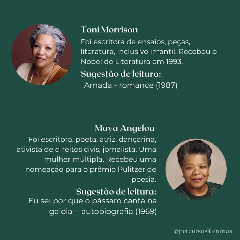 Você pode encontrar aqui no blog as resenhas de Amada, O olho mais azul, de Toni Morisson e Eu sei por que o pássaro canta na gaiola e Carta a minha filha, de Maya Angelou.