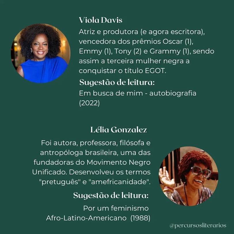 Por fim, aqui no blog, você também encontra as resenhas de Em busca de Mim, da Viola Davis e de Por um feminismo Afro-Latino-Americano, de Lélia Gonzalez.
