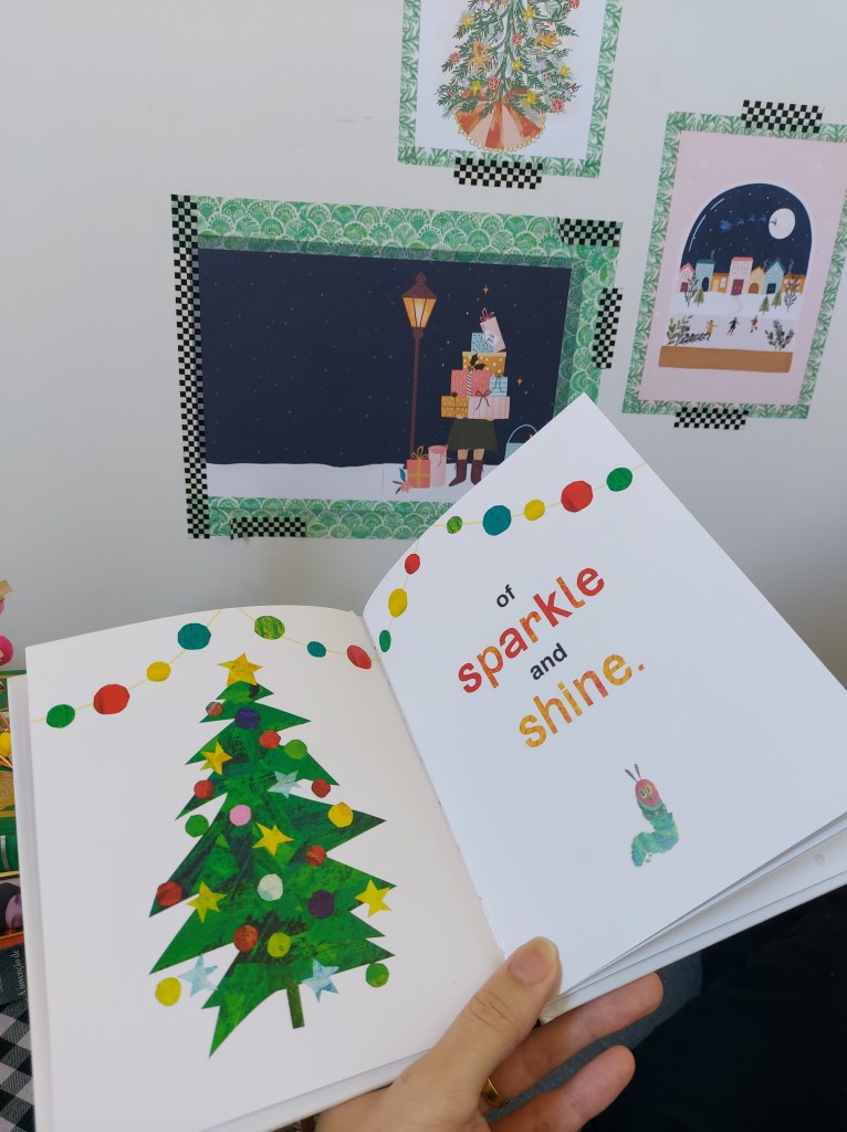 As duas fotos acima são do livro “Merry Christmas from The very Hungry Caterpillar”.