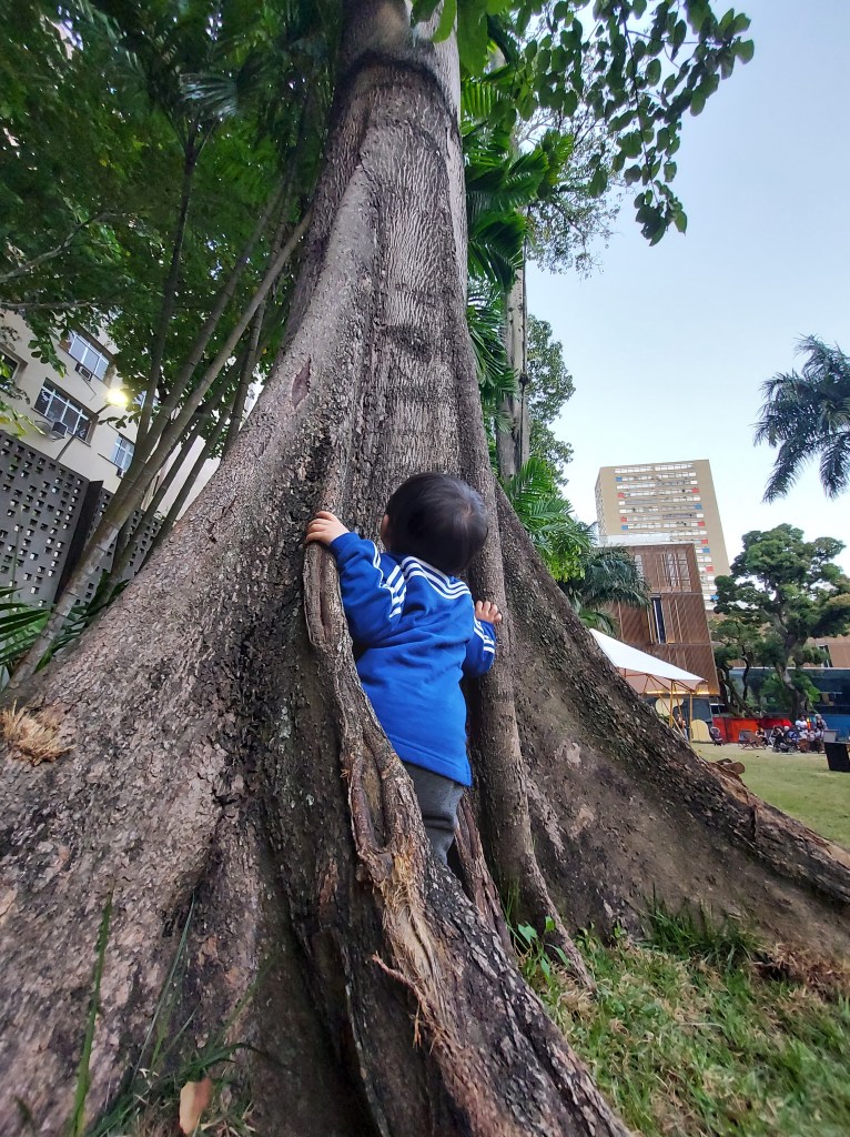 Já a parte externa, essa sim, foi vivida intensamente nas poucas horas que passamos ali na Rua Guilhermina Guinle, 211. Havia muitas crianças no dia, correndo pelo gramado, brincando, sendo crianças. Também havia muitas mães e cuidadoras, em rodas de conversa, deixando as crias soltas e livres, mas vivendo alegremente aquele burburinho social que muitas vezes sentimos falta depois da chegada da maternidade. Eu não estava com nenhuma amiga por lá no dia, mas foi gostoso só de ver a cumplicidade das manas.