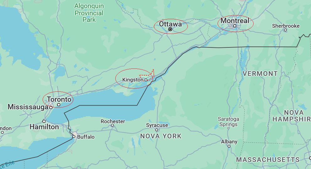 Kingston tem uma excelente localização. Para quem vai ao lado leste do Canadá, Kingston fica como uma cidade de ponto de apoio entre as cidades de Toronto, Ottawa e Montreal.