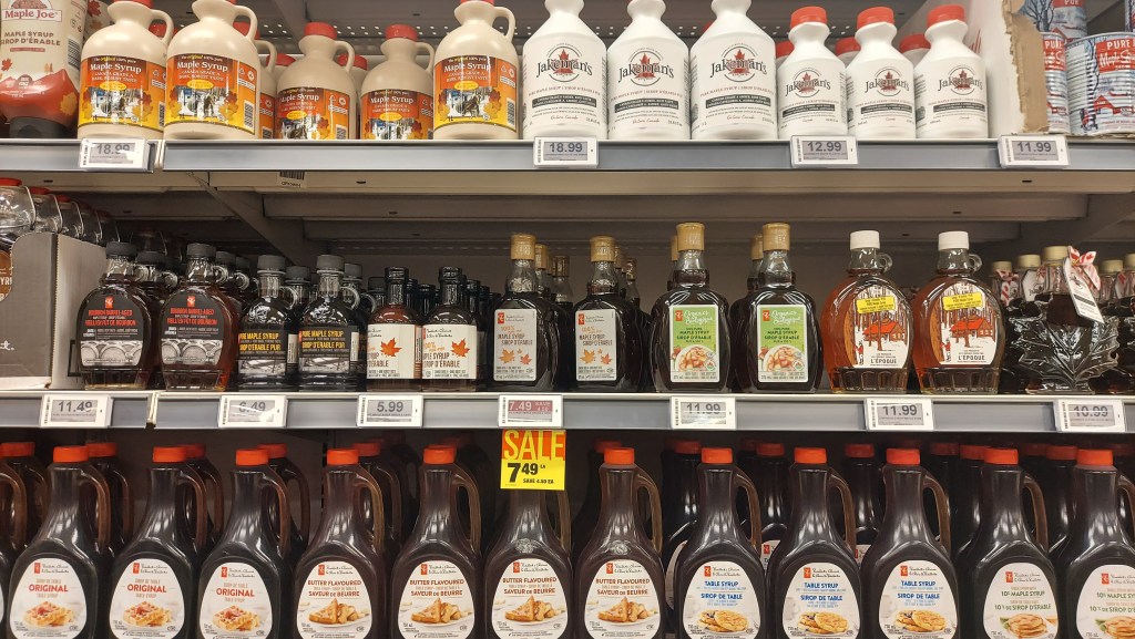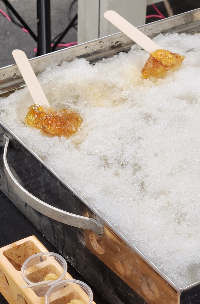 Além de ser uma iguaria bem típica do país, o que por si só já vale também a experiência de prová-la e até levar umas garrafinhas de lembrancinha para amigos e parentes. Há diversos doces feitos com o xarope, como amendoins, castanhas, etc, caramelizados com maple syrup, sorvetes, balas de goma e até pirulitos. Dentre os pirulitos, há o famoso Taffy, que se você estiver no Canadá nos períodos de neve, é outra coisa que indico experimentar, só pela experiência. Talvez o mais legal de experimentar o taffy, na verdade, seja toda a experiência ao redor da iguaria. Normalmente taffies são vendidos em fazendas que oferecem um tour de Sugar Bush, ou seja, de fazendas que expliquem sobre o processo de coleta e fabricação do maple syrup. O taffy nada mais é que o maple syrup numa consistência mais densa que permite que, em contato com a neve (limpa, óbvio), ela se transforme imediatamente numa espécie de pirulito (mas tem que comer rápido também!).