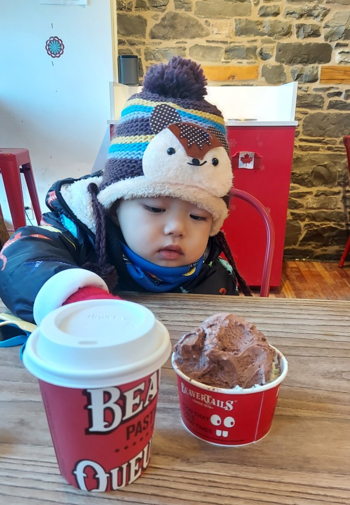 Beaver Tails, assim como a Purdys, é uma loja de rede. Mas o Bever Tails vende um doce canadense tradicional, que se chama beaver tail, porque, justamente, lembra o formato de uma cauda de castor (beaver tail, traduzindo, significa “rabo de castor”). Assim como a Purdys, também, seu carro-chefe não é, portanto, o sorvete, mas também tem a vantagem de poder ser encontrado em qualquer época do ano. O sorvete também é caro comparado à sua qualidade, e minha recomendação mesmo é o chocolate quente deles, que gostamos bastante.