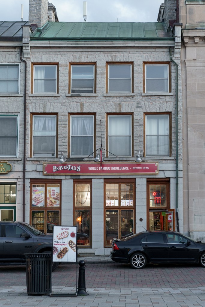 O Beaver Tail mesmo eu acabei não provando, mas ele é uma massa frita, que lembra a de uma pizza ou um pretzel, mas no formato de cauda de castor, e que leva uma cobertura, geralmente doce, à preferência do cliente. São diversos sabores e achei bem servido, a julgar pelo tamanho). Outra vantagem deste lugar é que há mesas para se sentar, já que na verdade, o local é uma espécie de restaurante.