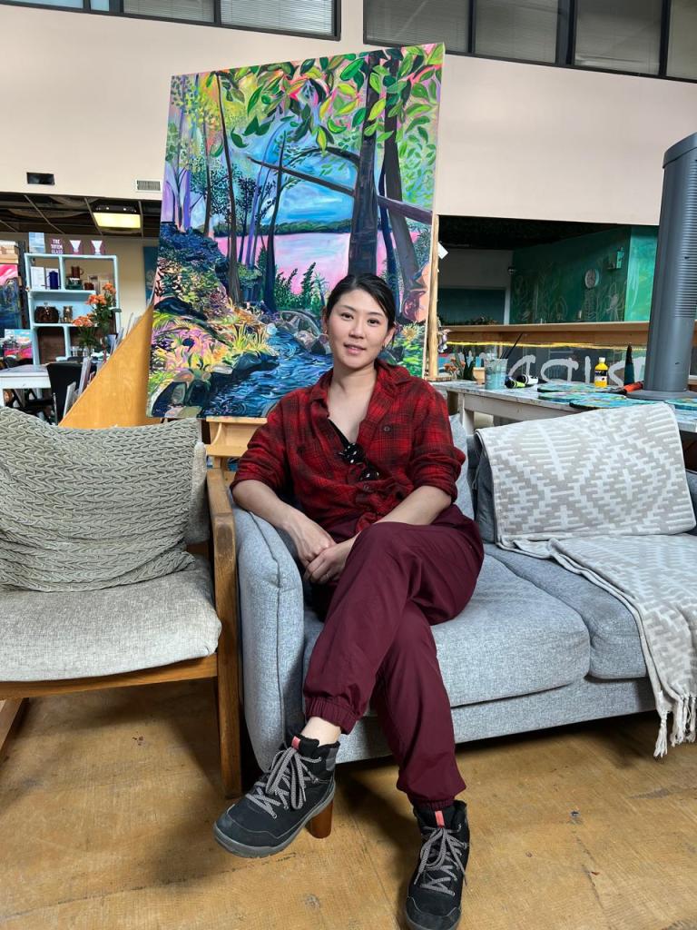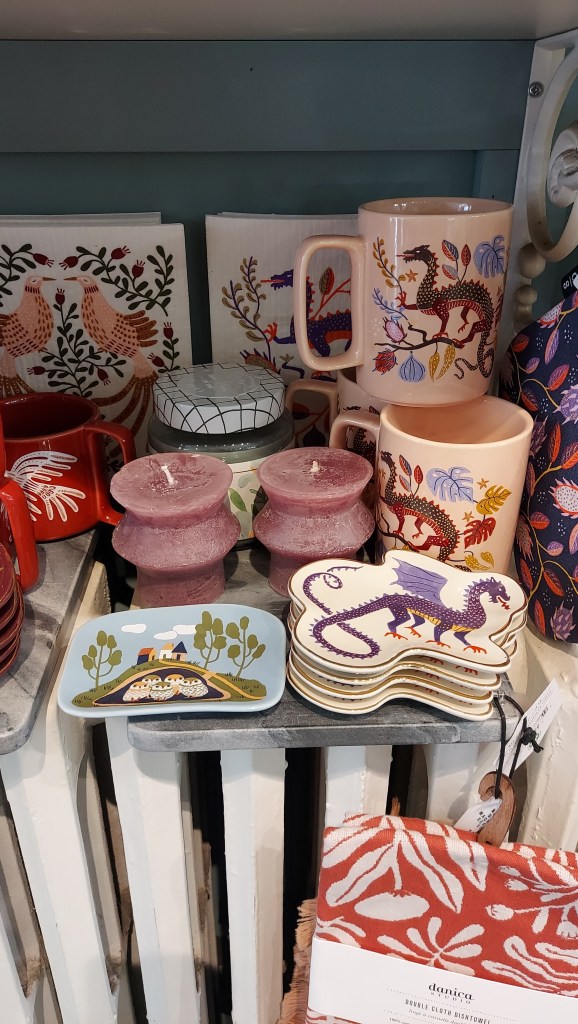 Além disso, no andar de cima, há um mezanino onde funciona outra loja e também um estúdio de arte. Como eu sou uma entusiasta de trabalhos manuais, embora não tenha comprado nada no antiquário, eu levei um print de uma arte de uma artista local. O print aguarda ser devidamente emoldurado para eu pendurá-lo na minha parede, mas eu realmente adorei a arte, e meu filho também curtiu muito minha escolha.