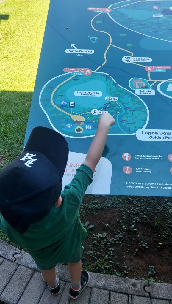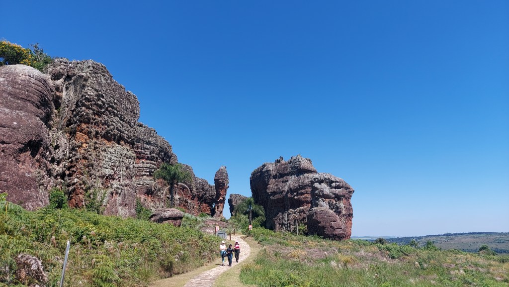 Inicialmente, a ideia dos meus pais era fazer um passeio mais tranquilo, como andar pelo município de Carambeí e conhecer a comunidade de Castrolanda, talvez visitar alguma fazendinha com animais. Mas meu filho foi muito enfático em dizer que queria ver a “taça”, em Vila Velha. Então fomos fazer o passeio pelo Parque Estadual de Vila Velha.