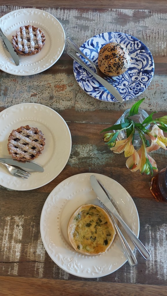 Em Carambeí fomos a uma confeitaria muito linda, a Frederika’s Koffehuis. A especialidade da casa são tortas doces, mas há salgados também. Eles têm opções inclusive sem glúten (mas produzidos por terceiros). Deles mesmo, eu indico muito a tortinha doce que leva farinha de arroz e dá uma crocância maravilhosa à massa (a da foto).
