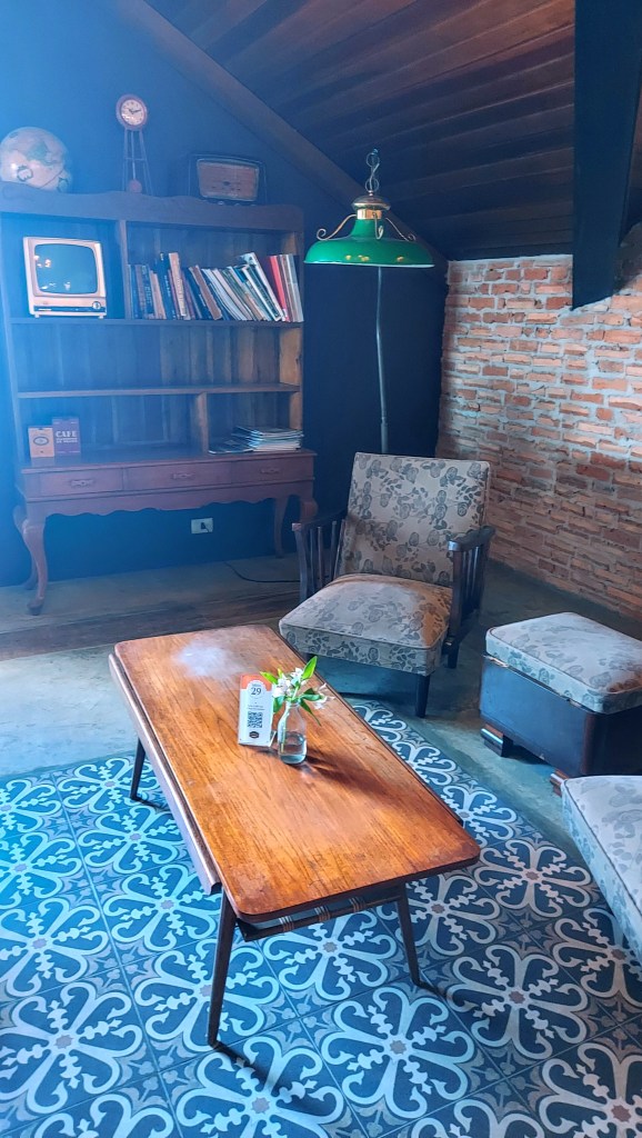 O local conta também com playground para as crianças, música ao vivo, e um tanque com carpas em frente à loja. O que meu filho mais gostou, aliás, foi de ficar vendo as carpas. Mas lembrem-se de reforçar o repelente. Levamos algumas picadas por lá olhando os peixes.