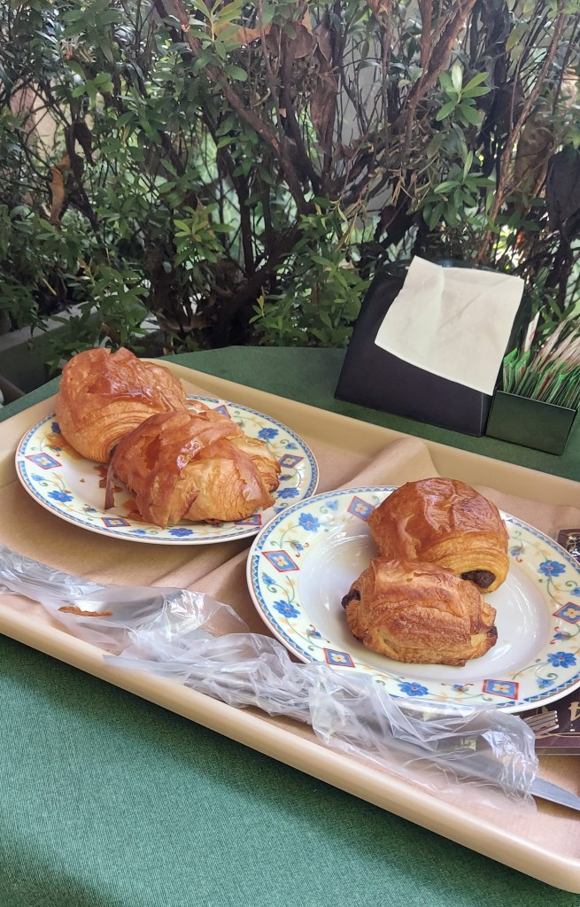 Meu marido e nosso filho gostam muito do pain au chocolat. Eu, quando comia glúten sem restrições, por outro lado, adorava o cornet chocolate, um pãozinho em formato de cone, que tem uma ganache de chocolate como recheio. E, claro, sempre amei croissant, e é uma das comidas que mais sinto falta hoje em dia.