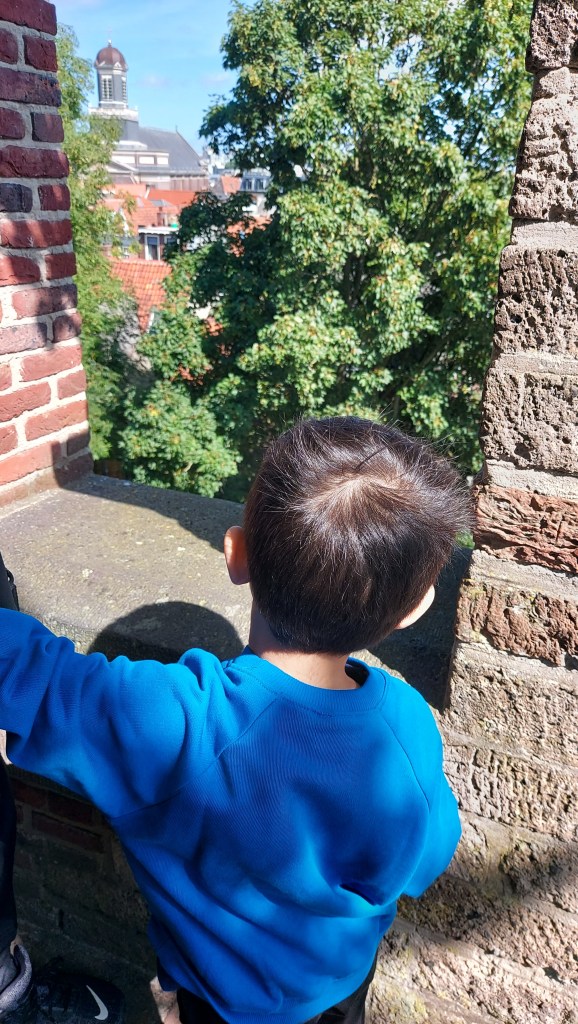 Então, em 2025, dez anos depois, eu e João levamos nosso filho para conhecer Leiden também, e, claro, eu quis muito levá-lo ao De Burcht também.